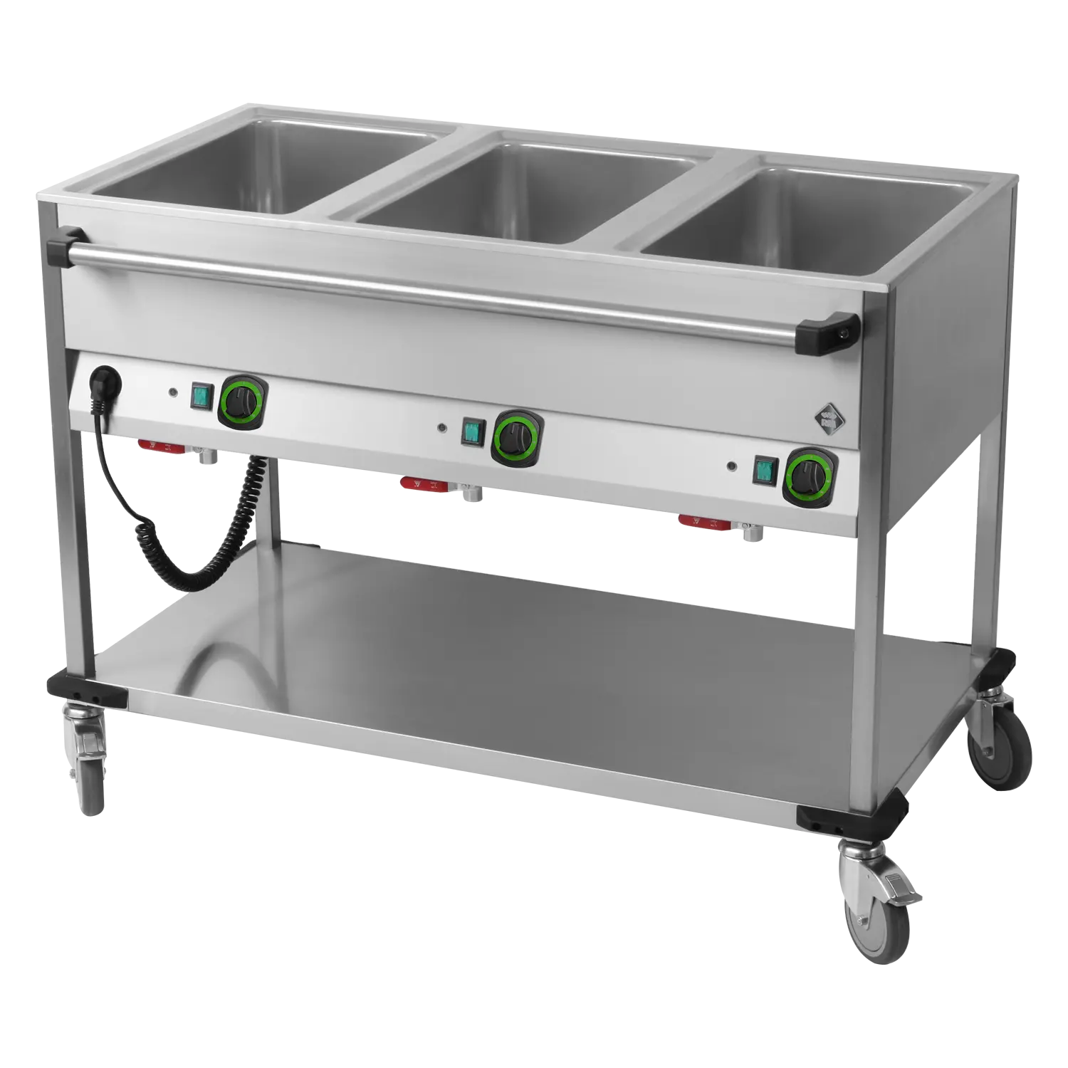 Bain marie trolley electric GN 3-1/1 controllers on longer side with rack | RM - BMPD 3120